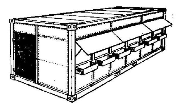 牲畜集装箱是一种专供装运牲畜的集装箱。为了实现良好的通风,箱壁用金属丝网制造,侧壁下方设有清扫口和排水口,并设有喂食装置。这种集装箱是专为装运牛、马等活动物而制造的特殊集装箱。